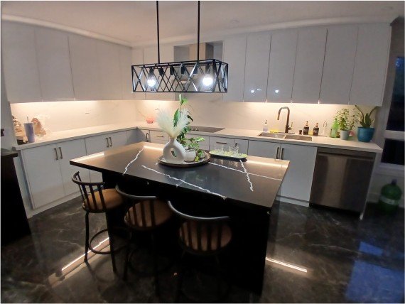 Outstanding craftsmanship and professionalism!" Custom Genies Inc. transformed our outdated kitchen into a modern, functional space.